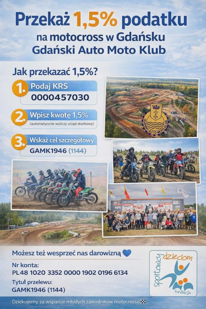 PRZEKAŻ 1,5% PODATKU NA MOTOCROSS W GDAŃSKU